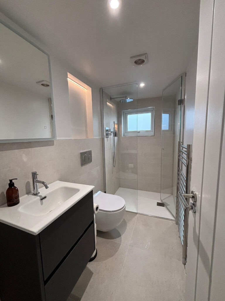 The completed loft conversion and bathroom provide a high-quality addition to the home, delivering a well-finished, functional space. Throughout the project, attention to detail was maintained, and the work was completed to a standard the homeowners were delighted with.