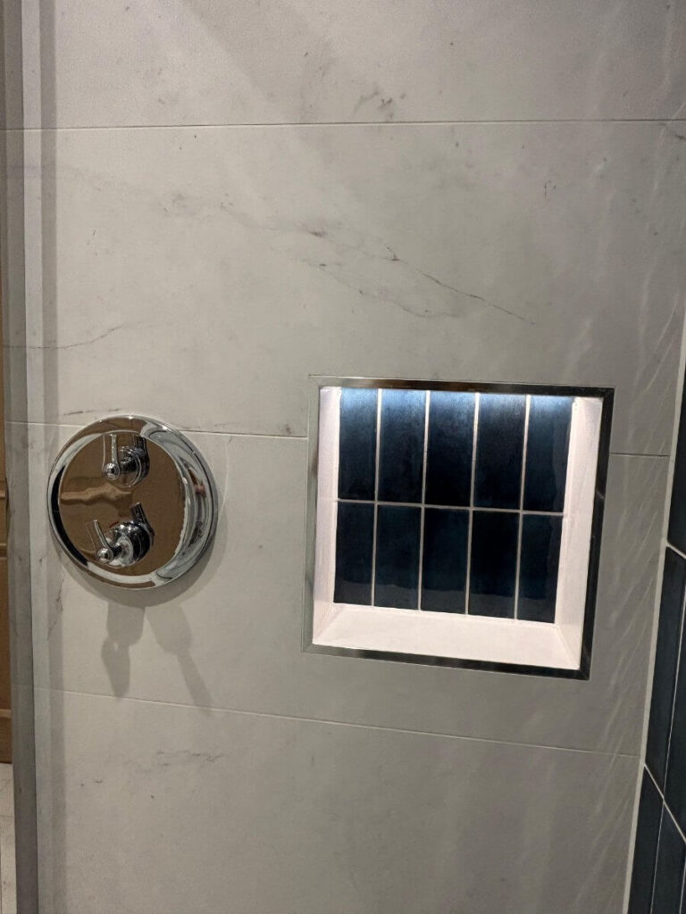 The bathroom design focuses on functionality and a clean, timeless look, with careful attention to finishes and detailing.