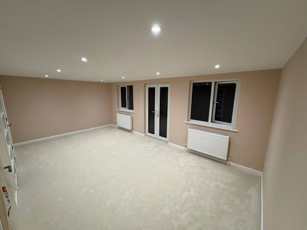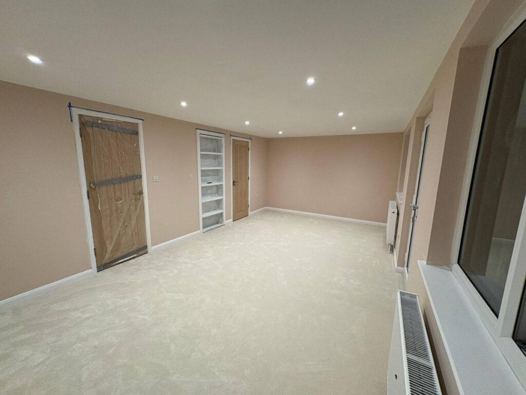 Internally, the new loft room has been finished with a neutral colour palette and recessed ceiling lighting, creating a calm and comfortable space. The layout makes full use of the available floor area, with clean lines and a simple, practical finish.