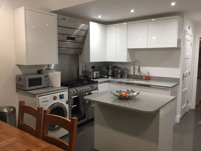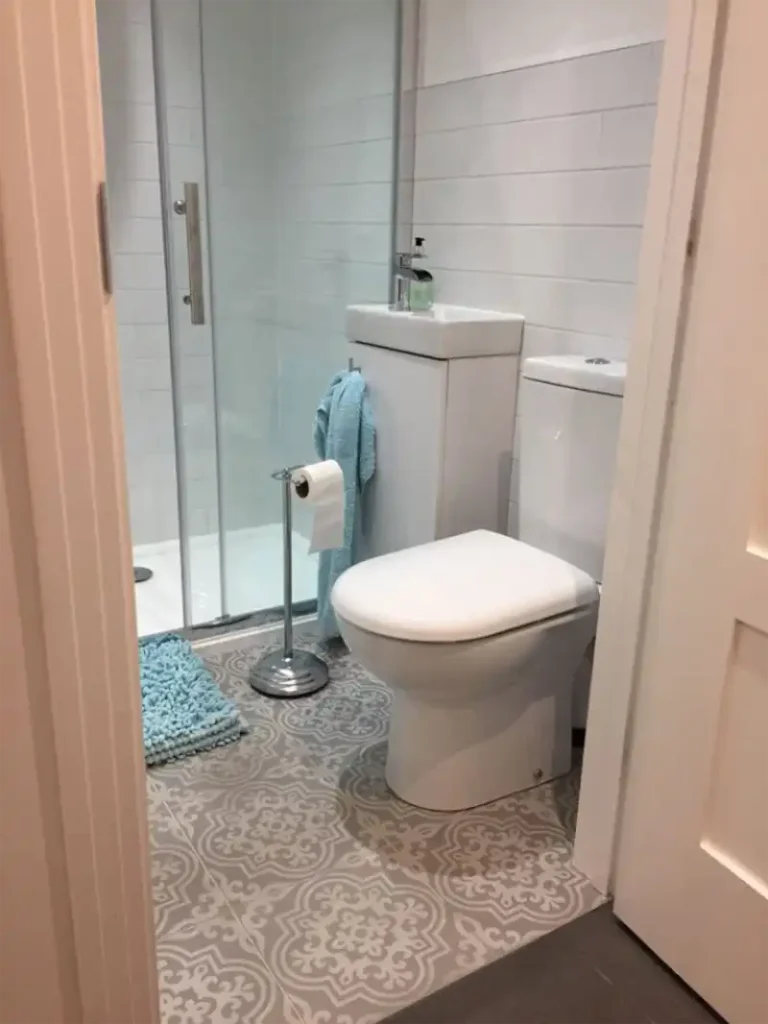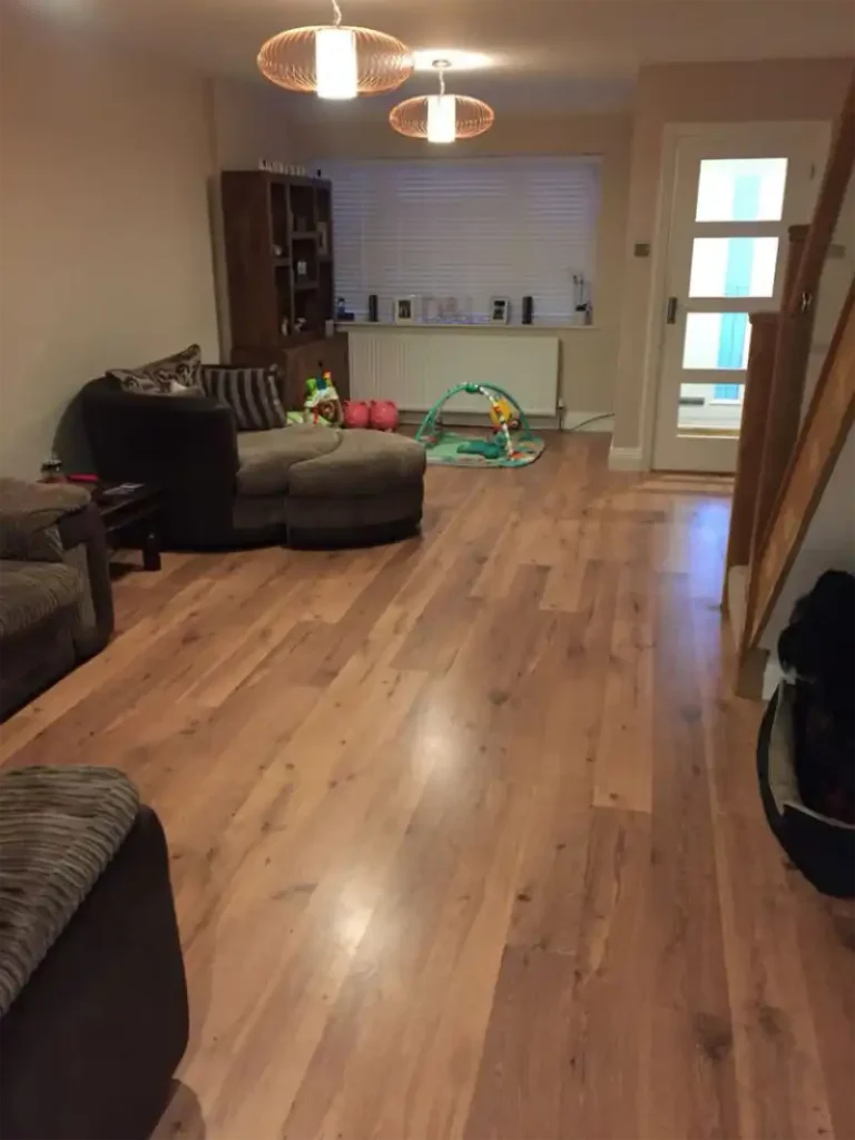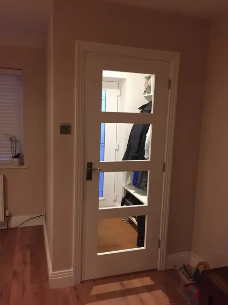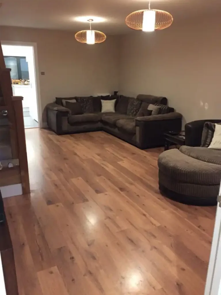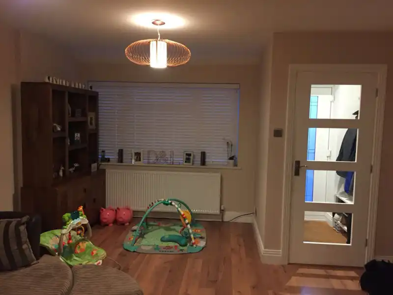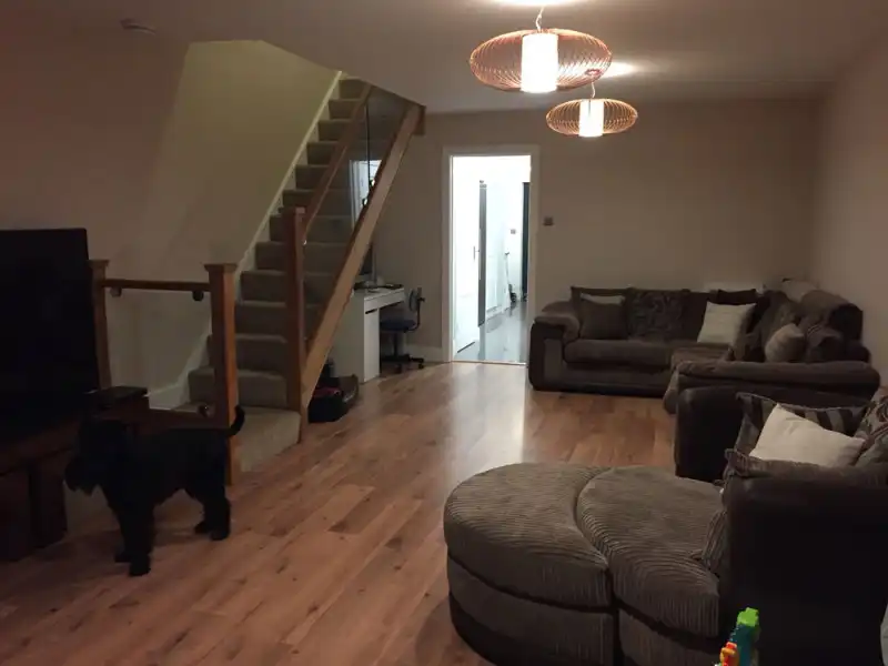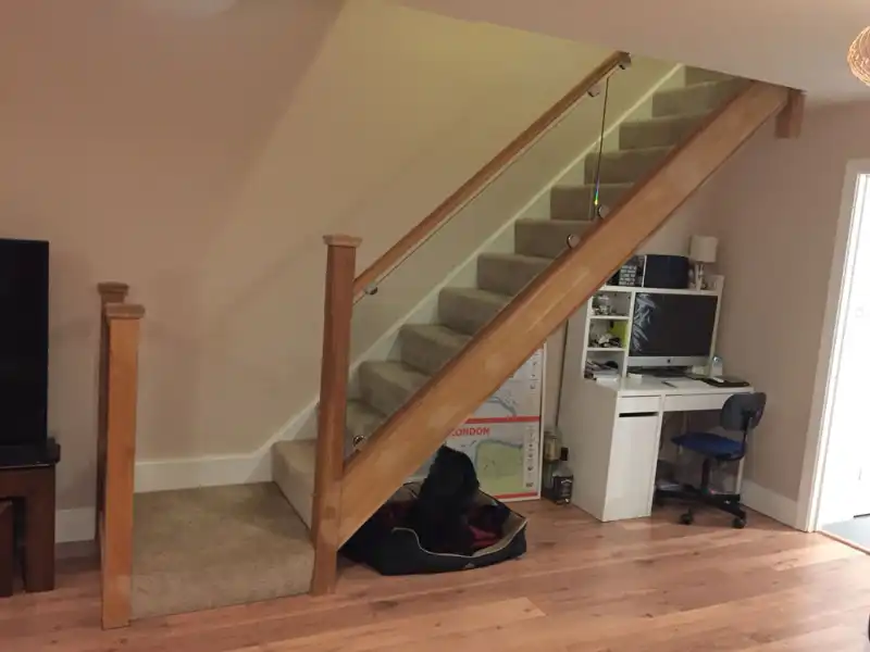 We also undertook a full ground floor refurbishment which included adding a downstairs shower room from a disused cupboard. A beautiful new oak staircase with glass balustrades, new laminate floor, doors, architraves, skirtings and full re-plaster.