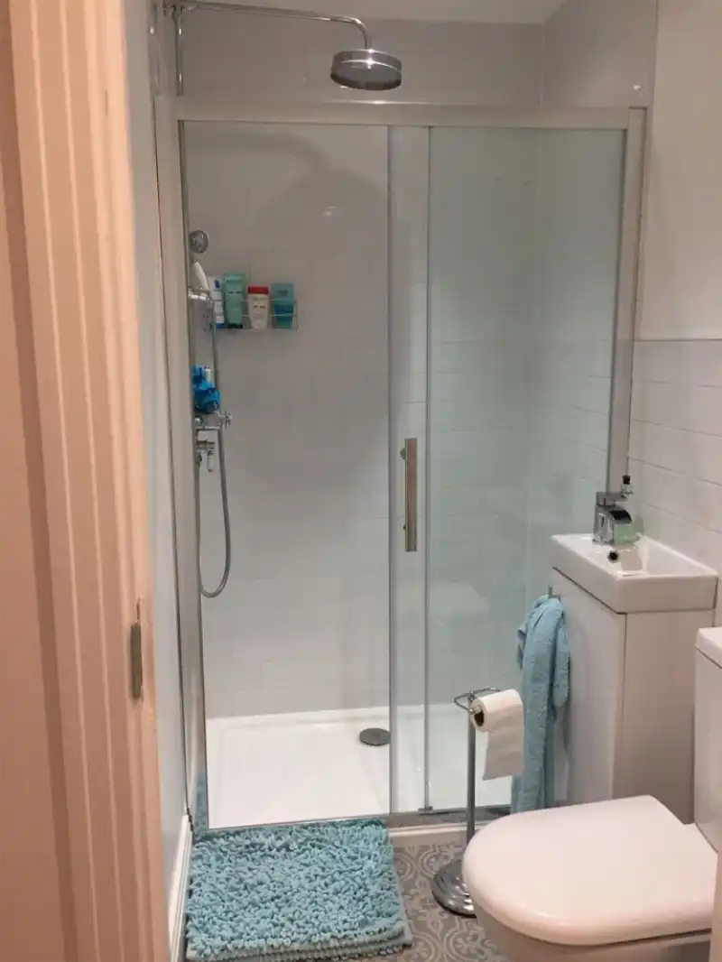 We also undertook a full ground floor refurbishment which included adding a downstairs shower room from a disused cupboard. A beautiful new oak staircase with glass balustrades, new laminate floor, doors, architraves, skirtings and full re-plaster.